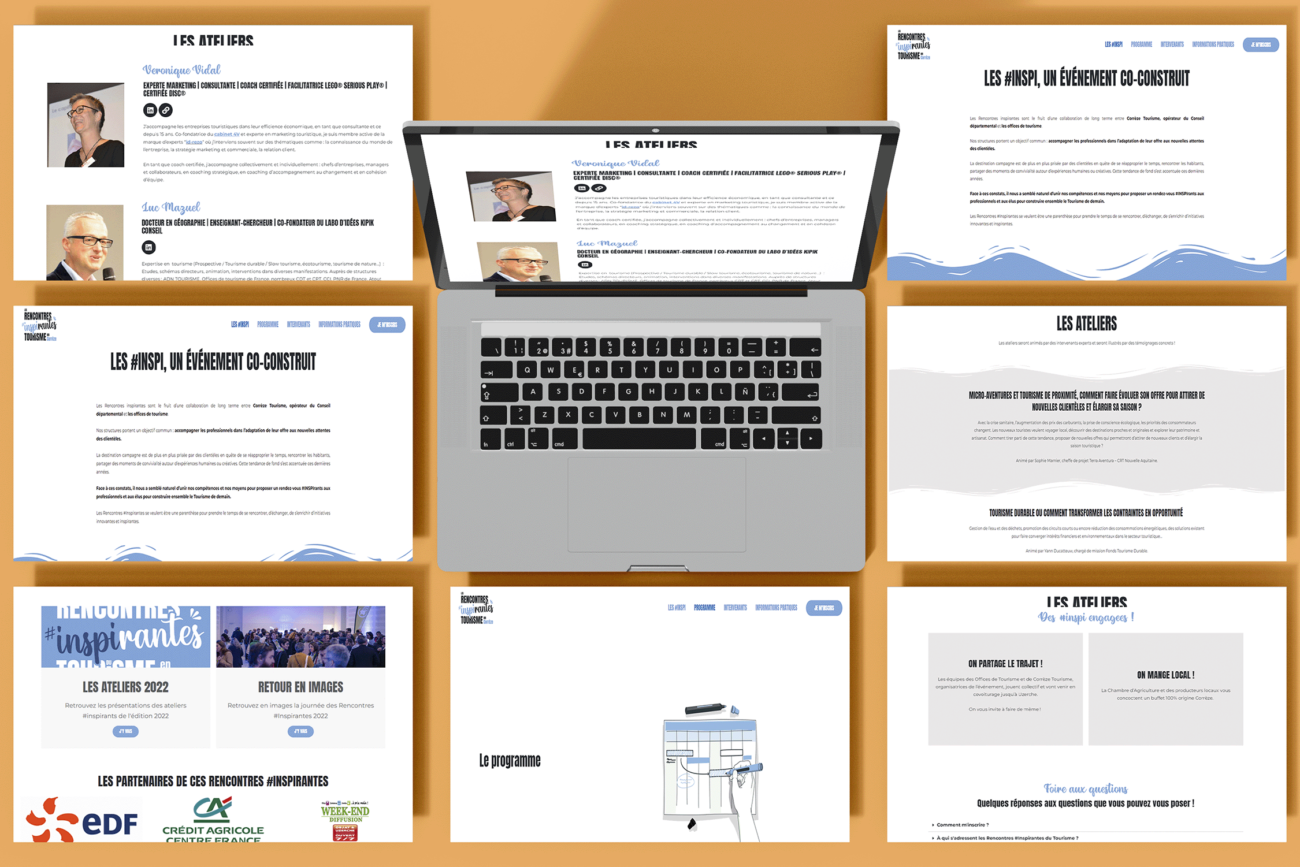 Pour ce projet, j’ai travaillé avec Corrèze Tourisme et l’ensemble des offices de tourisme de la Corrèze sur une identité visuelle et un site pour leur événement « Les Rencontres inspirantes du tourisme en Corrèze » en novembre 2022. Cet événement a pour but de rassembler les professionnels du tourisme en Corrèze lors d’une journée pour leur permettre d’échanger et de travailler ensemble autour de thématiques touristiques.